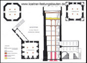 Die Mauern des Erdgeschosses-Außenmaße 12,20 x 12,20m-weisen eine Stärke von 2,50m auf.