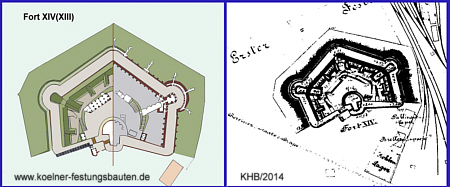 Das unter der Nummer Fort XIII gebaute Festungswerk wurde in der Zeit 1857-1859 anstelle der frühen Lünette 8 erstellt. Die letzte Bezifferung wurde auf Fort XIV festgelegt.