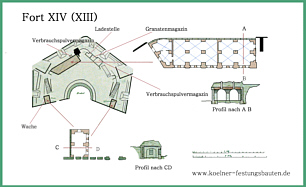 Technische Daten und Funktionsweise der Forts XIV und XV werden im Kapitel Fort XV beschrieben.