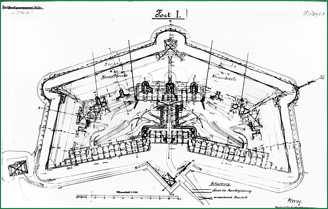 Die Abbildung zeigt den Grundriss des Fort X . mit Genehmigung zur Veröffentlichung auf dieser WEB-Site durch das Auswärtige Amt/Politisches Archiv