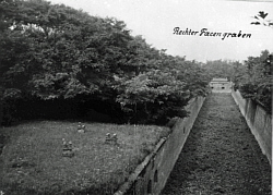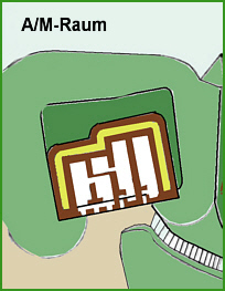 gesicherte Latrinengrube in Form von aufgemauerten Kaminen Fördertraversen im Frontwall nur ein großer einetagiger A/M-Raum links für Anschlußbatterie. In Feldrichtung mit abgerundeten Traversen.