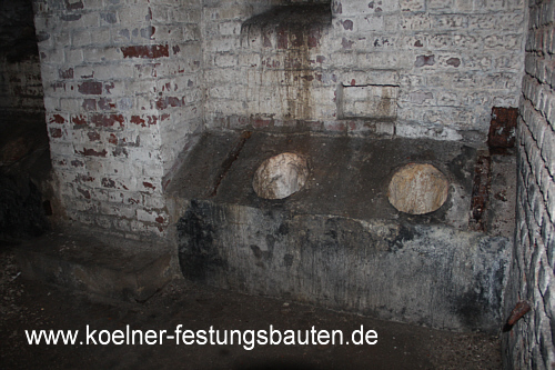In jedem Kehlkasernenflügel gab es 3 hintereinanderliegende Latrinenräume