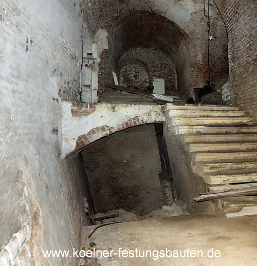 Der Treppenabgang führt in die erste Etage der Kehlkaserne. Der rechte Aufgang führt ins Obergeschoß (rechts),