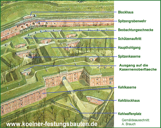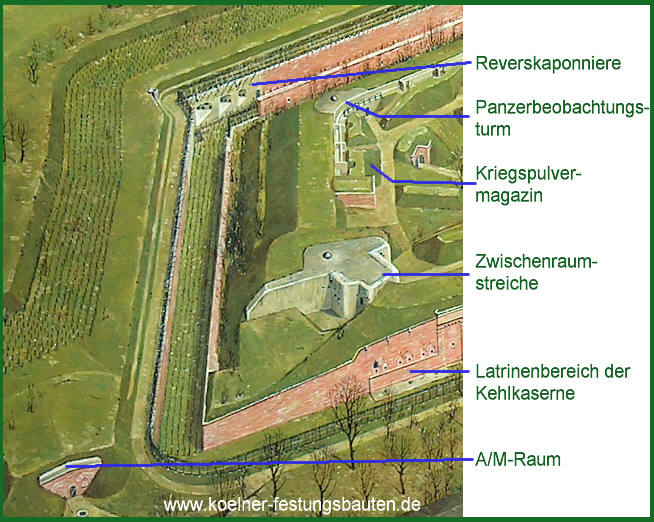 Mit Einführung der Brisanzmunition mußten die Kölner Festungen verstärkt werden. Aus Kostengründen wurden die Kehlkasernen nur zum Teil verstärkt.