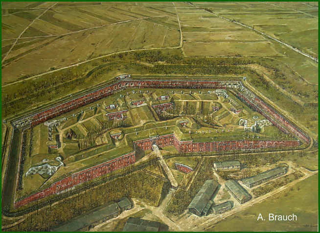 Die Nachbarforts lagen im Abstand von 3450m (FortV)/3000m (Fort VII)entfernt.
