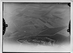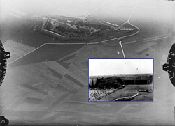 Auf dem Luftfoto wurde die Flankierungsbatterie Deckstein markiert