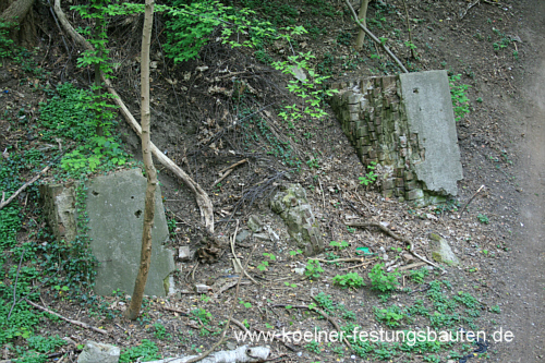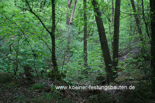 Leider verschwinden in den beiden Flankengräben die Mauerreste nach und nach, da die anliegenden Schrebergärtner dort ihren Rasenschnitt und sonstige Dinge entsorgen.