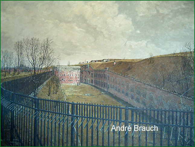 Die Abbildung zeigt ein Gemälde von Andrè Brauch. Hierbei handelt es sich um eine hervorragende Rekontruktion des Fort XI, basierend auf die nachfolgende zeitgenössische Entfestigungsaufnahme.