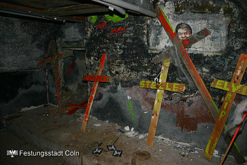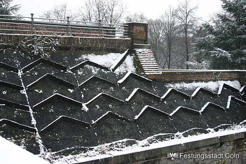 Links befindet sich der Treppenaufgangsbereich, der zum Mahnmal führt ist also kein Bestandteil der Festung.