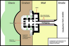 Die Kaponniere III der linksrheinischen Umwallung stellt eine Besonderheit dar.