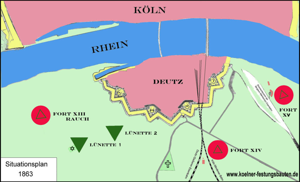 Hinweis: Die Nummerierung von Forts und Lünetten hat sich in Deutz mehrfach geändert.