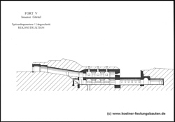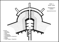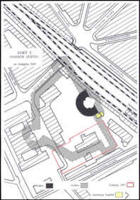 Wie bei den meisten Forts des Inneren Gürtels liegen auch für Fort V keine Baupläne vor; die erstellten Zeichnungen sind daher Rekonstruktionen, die auf Kenntnissen von groben Skizzen, Plänen von Nachbarwerken und einer umfassenden Grabung im Jahr 2005 fußen.