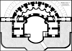 - eine Dach-Plattform zum Feuerkampf gegen den Feind außerhalb des Werkes im Rahmen der entsprechenden Geschützreichweite.