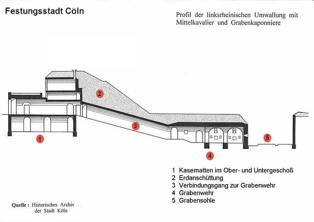 Die meisten Kavaliere waren mit Kasematten versehen, die man in Köln nach der Nummer des Frontabschnitts einfach als