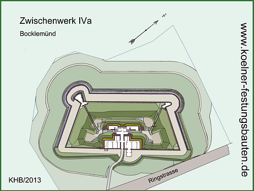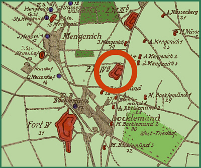 Bezeichnung: IVa (großes Zwischenwerk zwischen Fort IV(links)/ Zwischenwerk IIIb (rechts) des äußeren Festungsgürtels