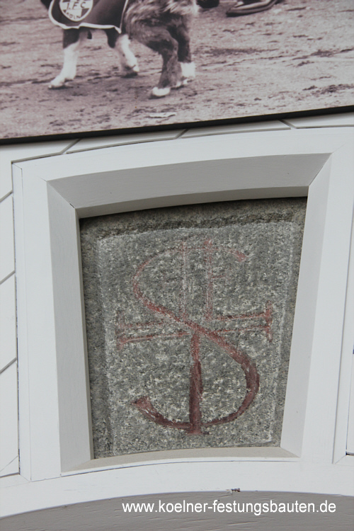 Schlußstein oberhalb der Poterne mit Gravur Die Bedeutung der Gravur ist mir nicht bekannt. In der Regel waren die Steine neutral, d.h. ohne Inschrift